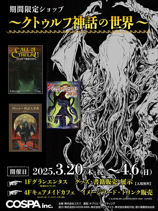 期間限定ショップ「~クトゥルフ神話の世界~」が3/20より秋葉原に登場。物販に加えクトゥルフをイメージしたコラボメニューの提供などが決定!【株式会社コスパ】