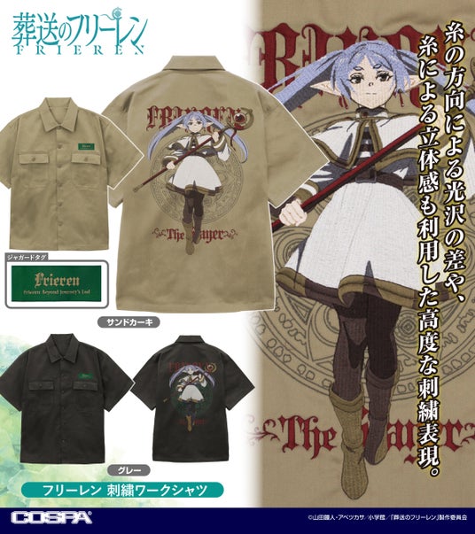 TVアニメ『葬送のフリーレン』より、10万ステッチ以上の刺繍技術で「フリーレン」「フェルン」を再現した「刺繍ワークシャツ」がCOSPA(コスパ)から登場!