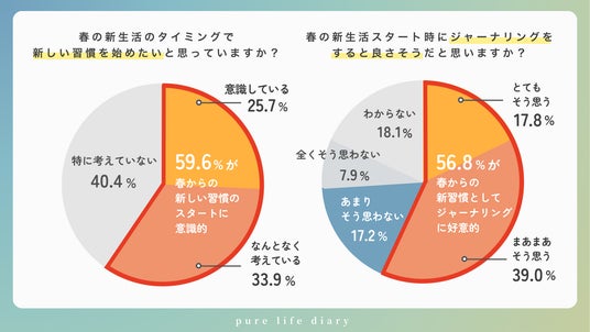- 新生活のタイミングで新習慣を始めたい人は59.6%。「新生活の時期にジャーナリングが良さそう」と56.8%が回答。