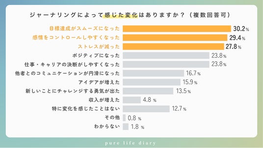 ■ ジャーナリングによって感じた変化、第1位は「目標達成がスムーズになった」で30.2%。