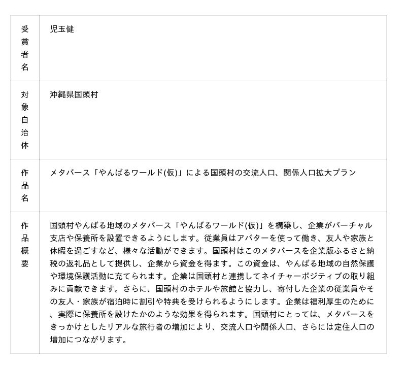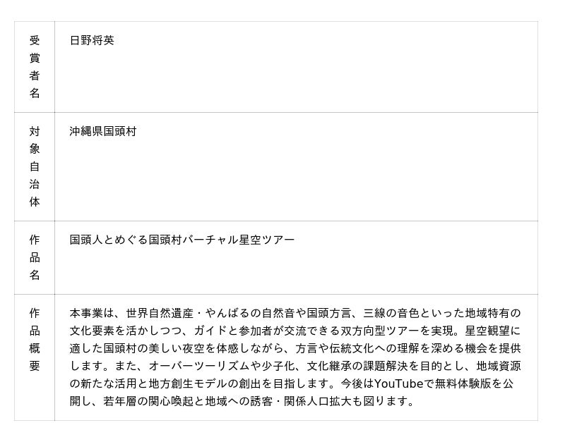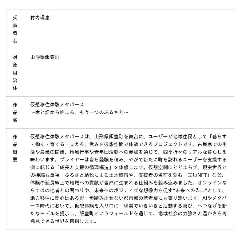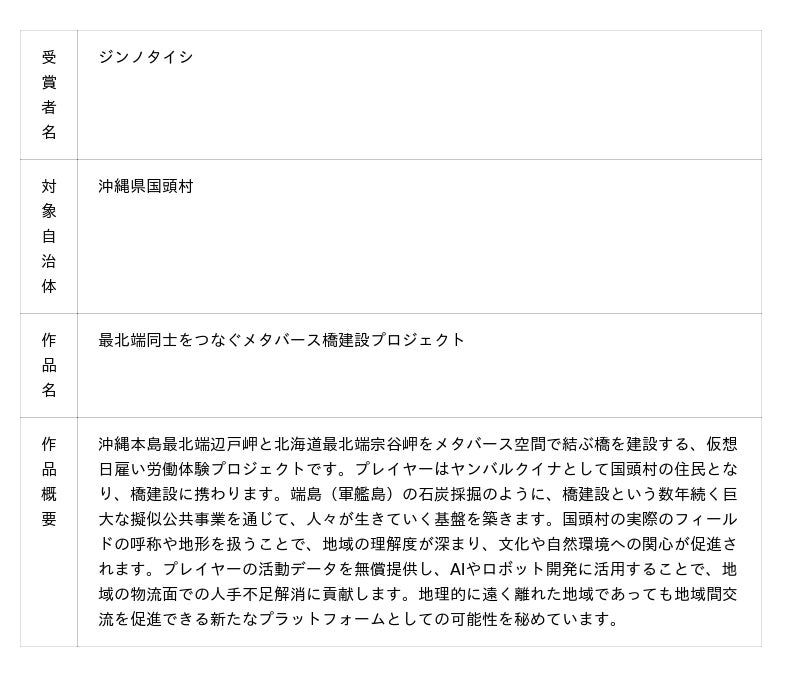 ~地域文化・歴史資源を活かした6つの受賞作品を発表、仮想空間で描く“次世代の地方創生”~